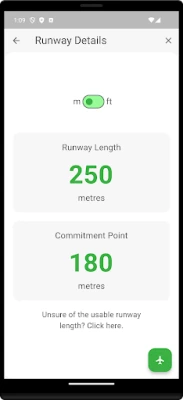 Firstly, you must enter both the runway length and your desired commitment point, however far down the runway you choose that to be. Many pilots would tend to choose a point close to a landmark to make it more visually obvious, such as for example a club hut that’s partway down the runway.