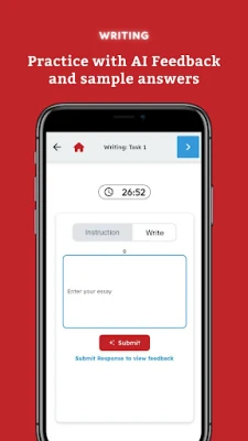 IELTS Writing with AI Scoring: Improve your writing clarity and correctness. Receive instant AI feedback to gauge your performance and identify areas for improvement.