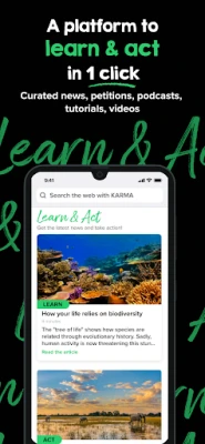 KARMA also gives you access to a selection of news, petitions and resources to take action.