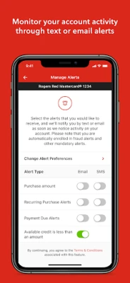 The Rogers Bank app lets you manage and monitor your money using your mobile phone.
