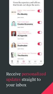 💼 Newsletters: Manage your newsletter subscriptions, including Creator Economy, Dealmaker, The Briefing and more.