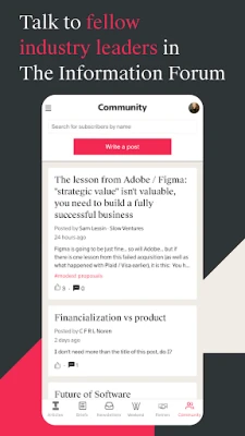 🗂 Forum: Subscribers can share their hot takes, ask questions, and respond to others’ posts in The Information Forum.