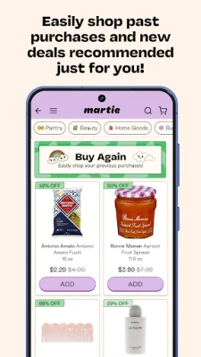 When you shop on the Martie App, you can easily stay up to date on the best deals, get step by step delivery information on your orders, reorder your favorites, and have access to our customer service team with any questions.
