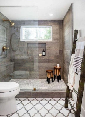 To get the most out of your shower, create a large bath area by combining the shower and tub in the formerly open space of the bathroom. This layout is a great way to make a small bathroom more versatile, as it appears twice as big as it is, with glass as the only barrier.