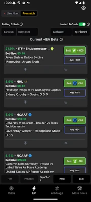 - Expected Value (EV) calculator to identify mathematically profitable bets