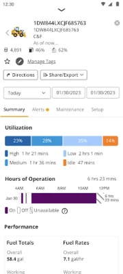 • Monitor machine fuel performance and productivity metrics