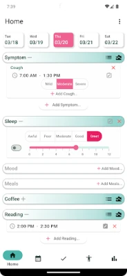 - Set reminder notifications for ongoing symptoms or to log entries.